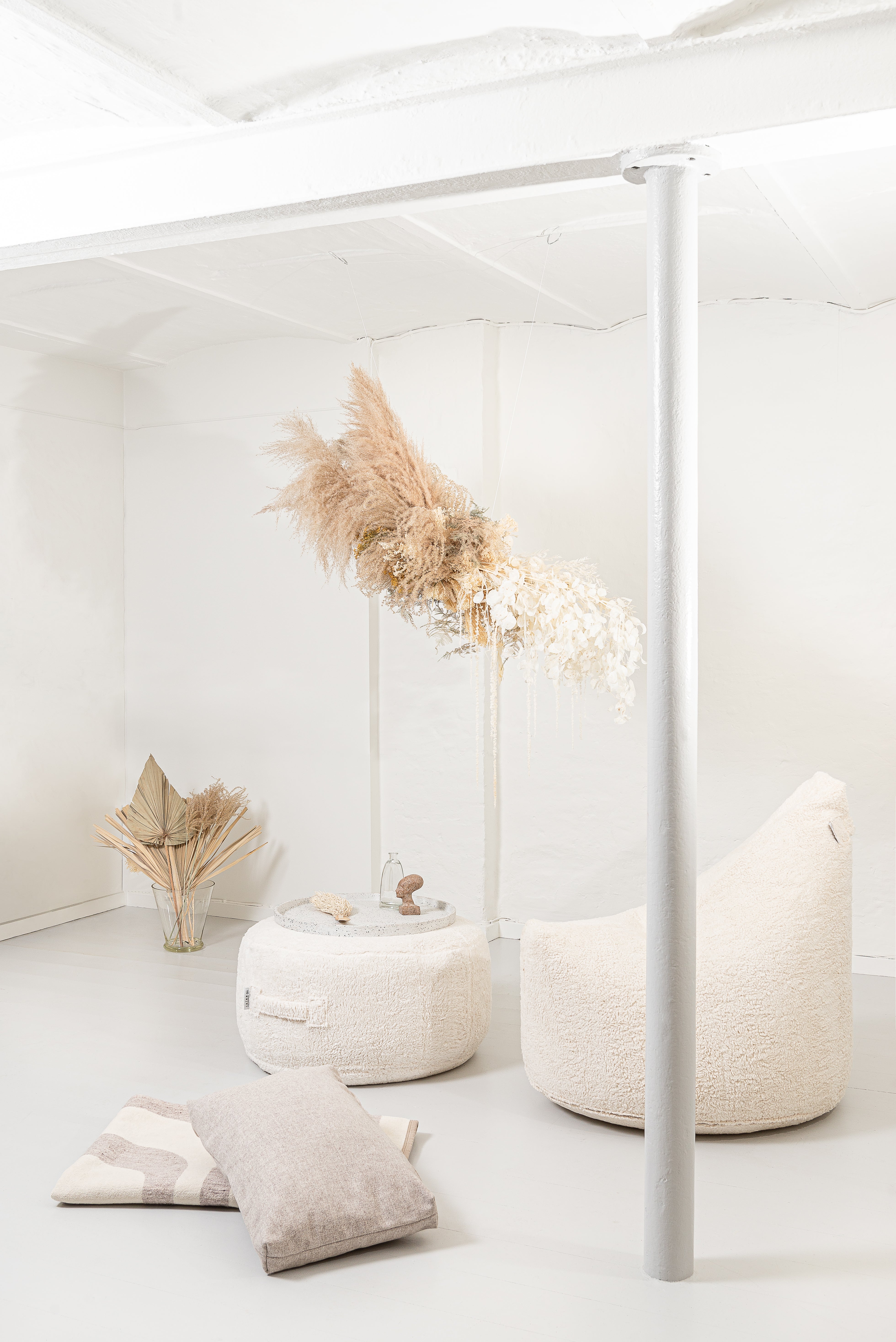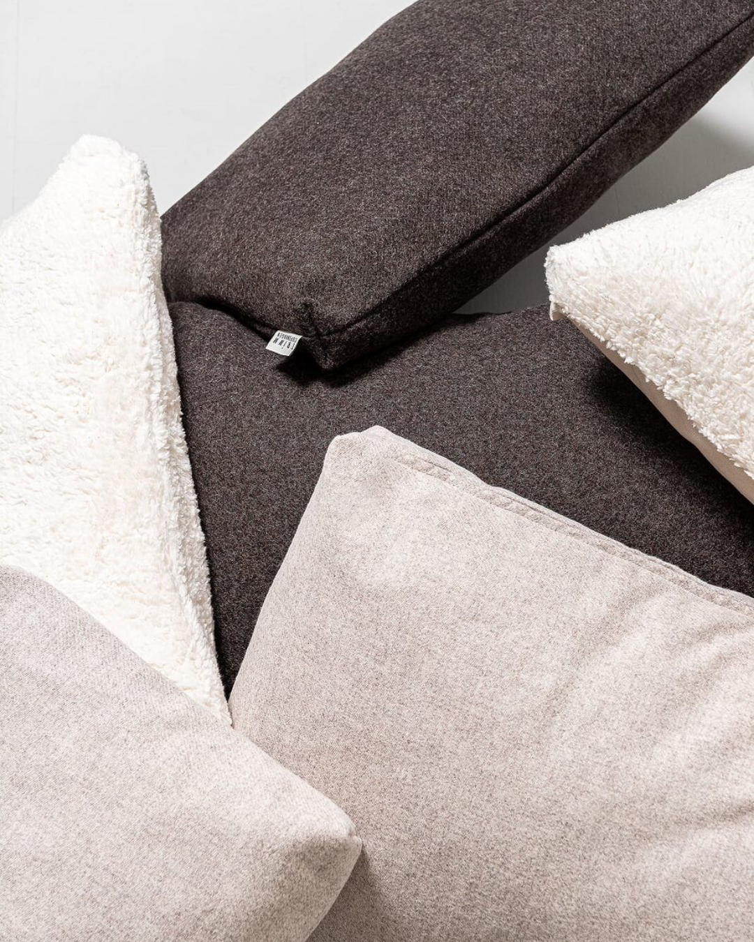 Alle Wollprodukte haben einen abnehmbaren Bezug, der die Reinigung erleichtert und es ermöglicht, den Bezug zu wechseln, wenn Sie eine andere Farbe oder ein anderes Material wünschen.