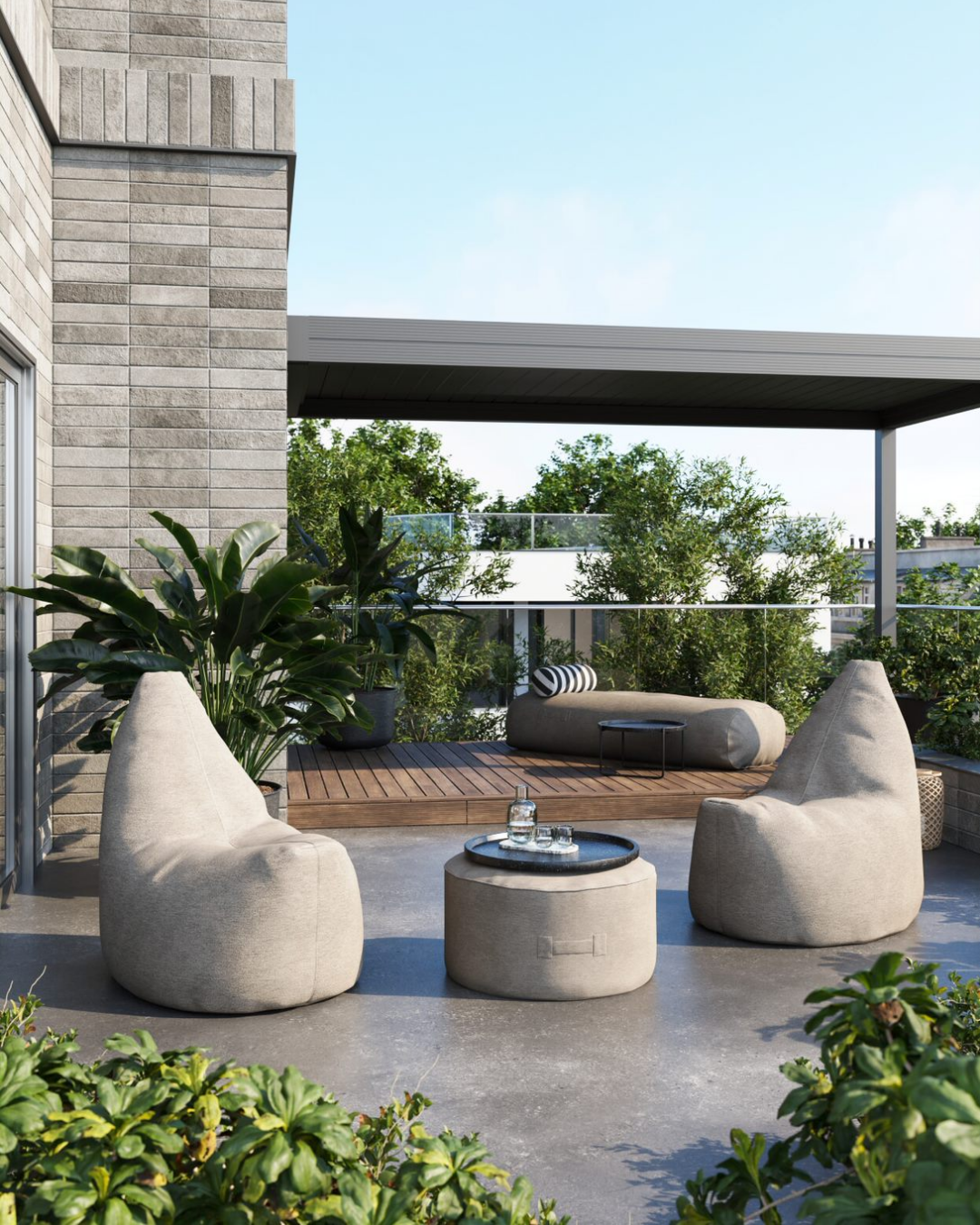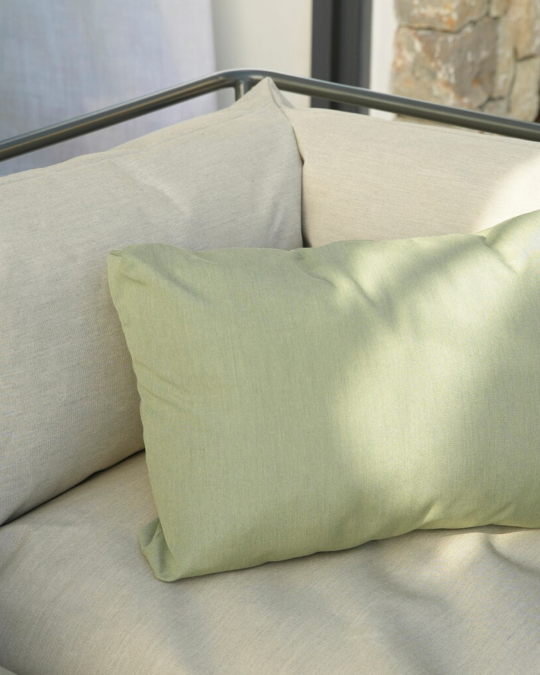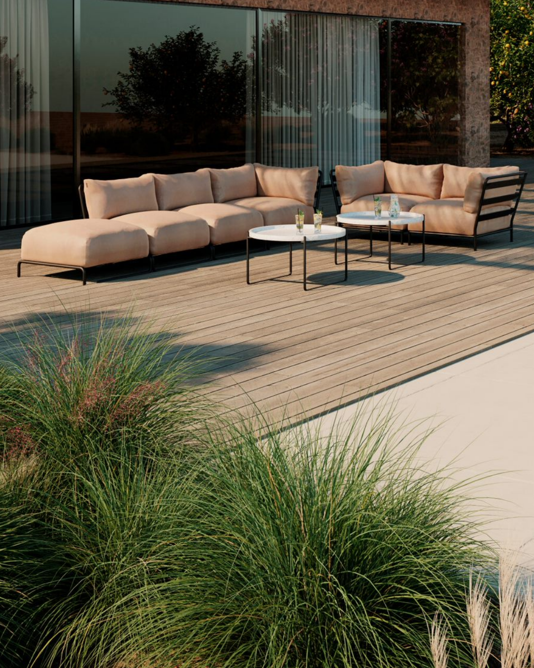 Unsere Gartenmöbel bestehen aus Sunbrella Plus, einem leistungsstarken Material, das ursprünglich für Boote entwickelt wurde. Es ist extrem wasserabweisend mit einer Acrylbeschichtung, die dreimal effektiver ist als andere Sunbrella-Materialien. Zudem ist es atmungsaktiv, verhindert Kondensation und ist dank einer pilzresistenten Salzwassermischung flecken-, schimmel- und mehltauresistent.